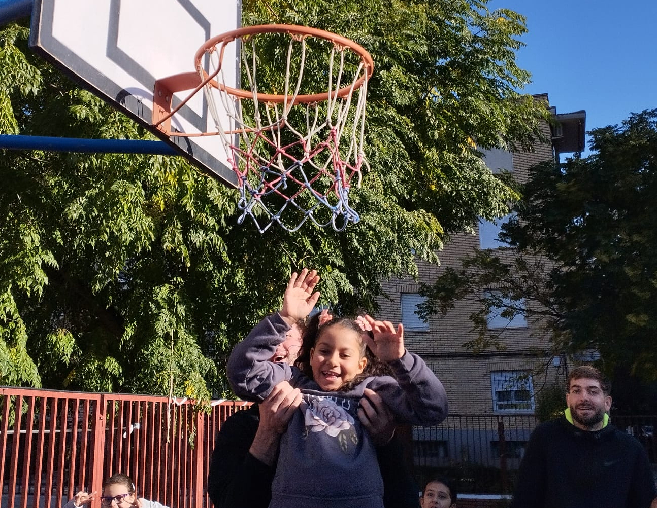 Más allá de la técnica y la estrategia, los jugadores hicieron especial hincapié en los valores que acompañan al deporte: trabajo en equipo, constancia, esfuerzo diario y respeto por los demás. Los alumnos pudieron preguntar todo lo que quisieron, generando un diálogo cercano y enriquecedor que convirtió la charla en un auténtico intercambio de ideas y motivación. Tras esta primera parte teórica, llegó el momento más esperado: la exhibición en la pista del colegio. Los jugadores realizaron demostraciones de habilidades, lanzamientos y pequeños retos deportivos en los que los niños participaron activamente. Risas, aplausos y algún que otro intento fallido formaron parte del espectáculo, pero lo más valioso fue el aprendizaje vivido en primera persona: la disciplina y la diversión pueden ir de la mano.